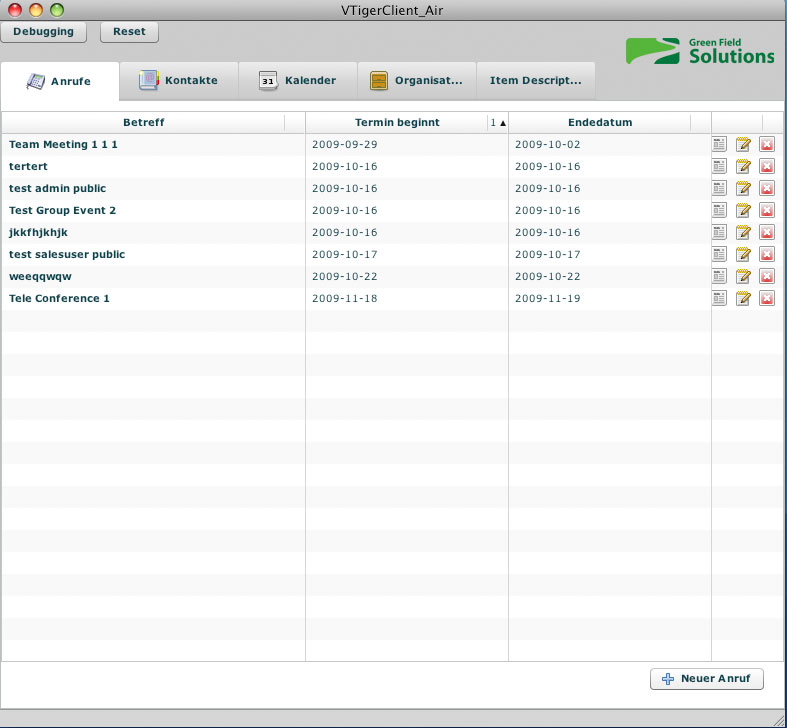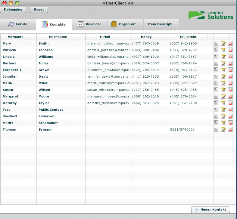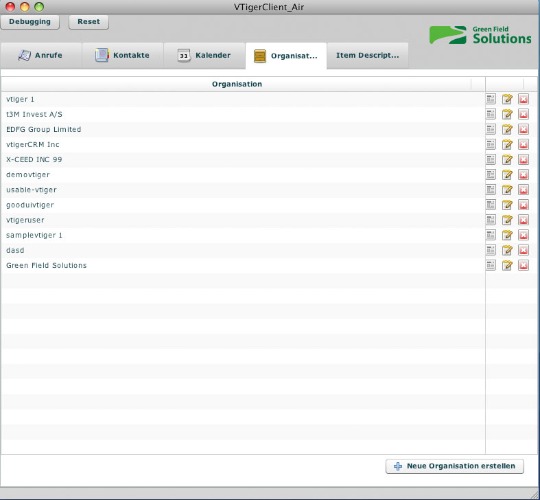 Es lassen sich Features des Vtiger-CRM bequem innerhalb einer Flex- oder Air-Applikation nutzen und mit anderen Applikationsmodulen vernetzen. Ausserdem lassen sich leicht kleine Widgets erstellen um einen schnellen Zugriff auf z.B. Tasks, Termine, Anrufe oder Kunden zu erhalten. Screenshots: ![]() ![]() |