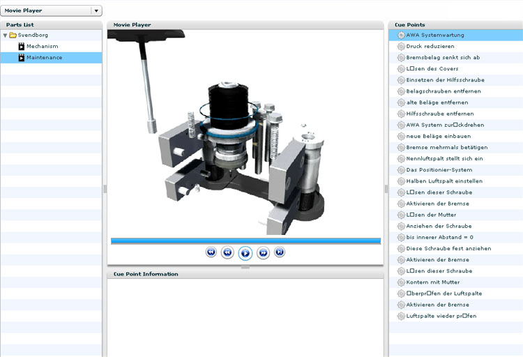 Der Media Player wird für Training und Schulung und technische Visualisierungen genutzt um Videos, Bilder und unterstützende Texte zusammen zu bringen. Die Texte können an bestimmten Zeitmarken im Video aufgeblendet werden.